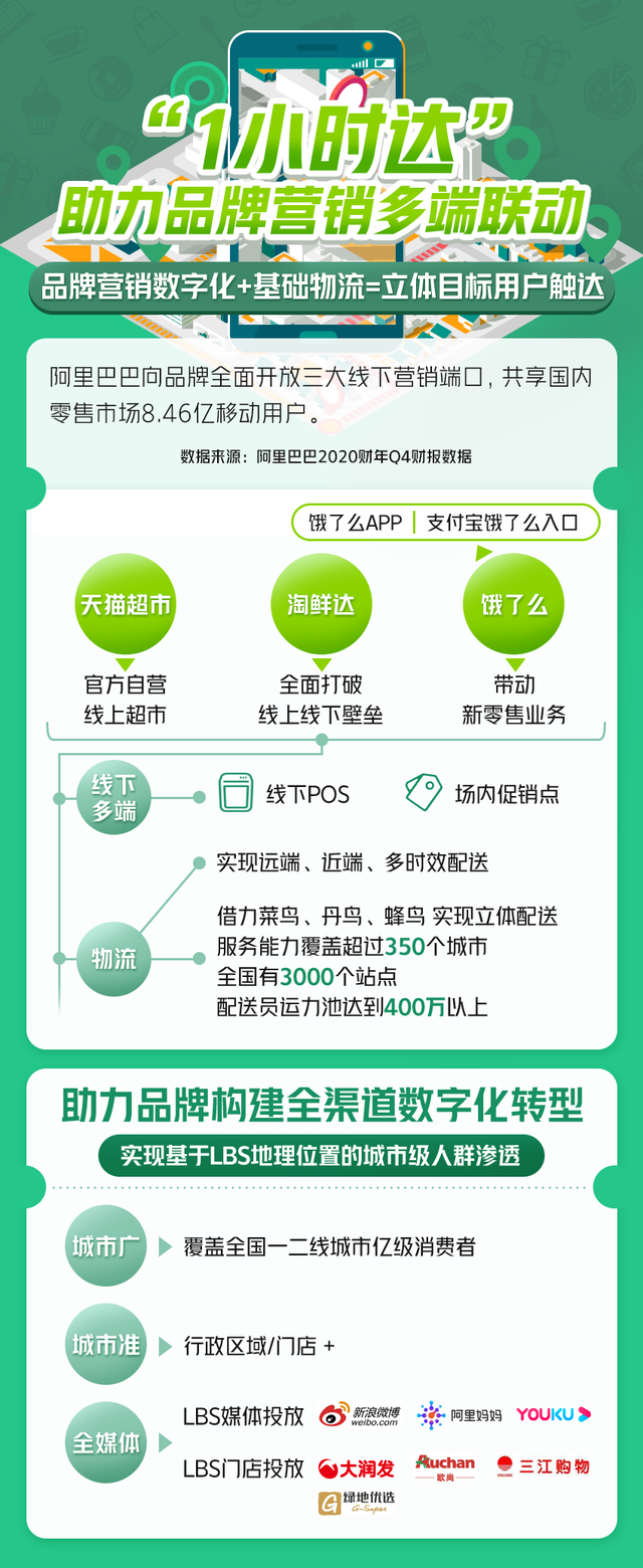 天猫超市、淘鲜达、饿了么今天宣布与伊利升级战略合作,双方将共同在营销、服务等方面合作。根据双方签订的合作文本,伊利一站式入驻上述三大零售平台之外,在线下市场,也将利用淘鲜达数字云店(线下POS机)、以及在大润发、欧尚等大型商超场内促销点,最终通过菜鸟物流体系,实现商品在全国主要城市一小时到家配送。