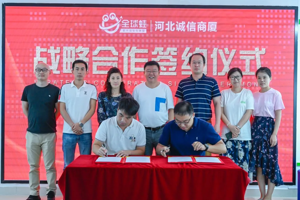 交流会议后,基于对全球蛙的信任以及对区域超市数智化未来发展的期望,诚信商厦百货集团与全球蛙签署了战略合作协议。