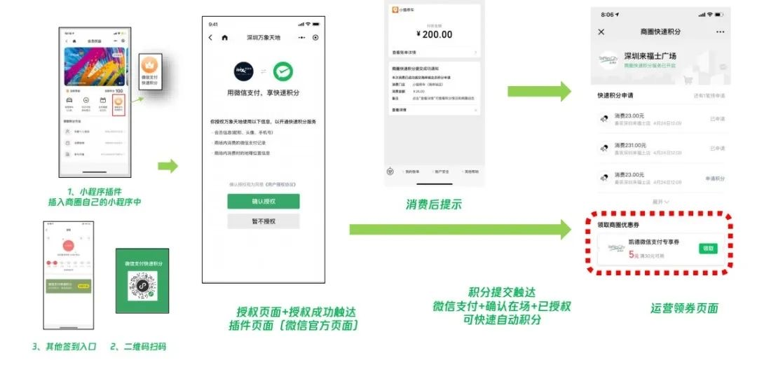 此外,华润置地商业还可以借助微信“微信支付快速积分”的能力,扩充“万象会”会员的拉新渠道,实现多场景高效拉新;并同时获取用户信息,进行对会员画像的补充和标签的积累,从而实现精准营销。