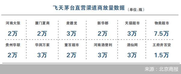 从今年9月起,王府井百货提供1.5万瓶飞天茅台;天猫超市将大幅增加500ml装53度飞天茅台供应量;新世纪超市/重庆超市增加6万瓶飞天茅台。酒便利、酒仙网三天分别发售3万瓶飞天茅台。华润万家在26个城市指定的82家门店,合计投放3万瓶500ml装的53度飞天茅台;9月25日-28日,又有4家茅台直销渠道商宣布投放合计9万瓶飞天茅台。北京物美超市也在五天内每天发放1.5万瓶飞天茅台,累计增加7.5万瓶。