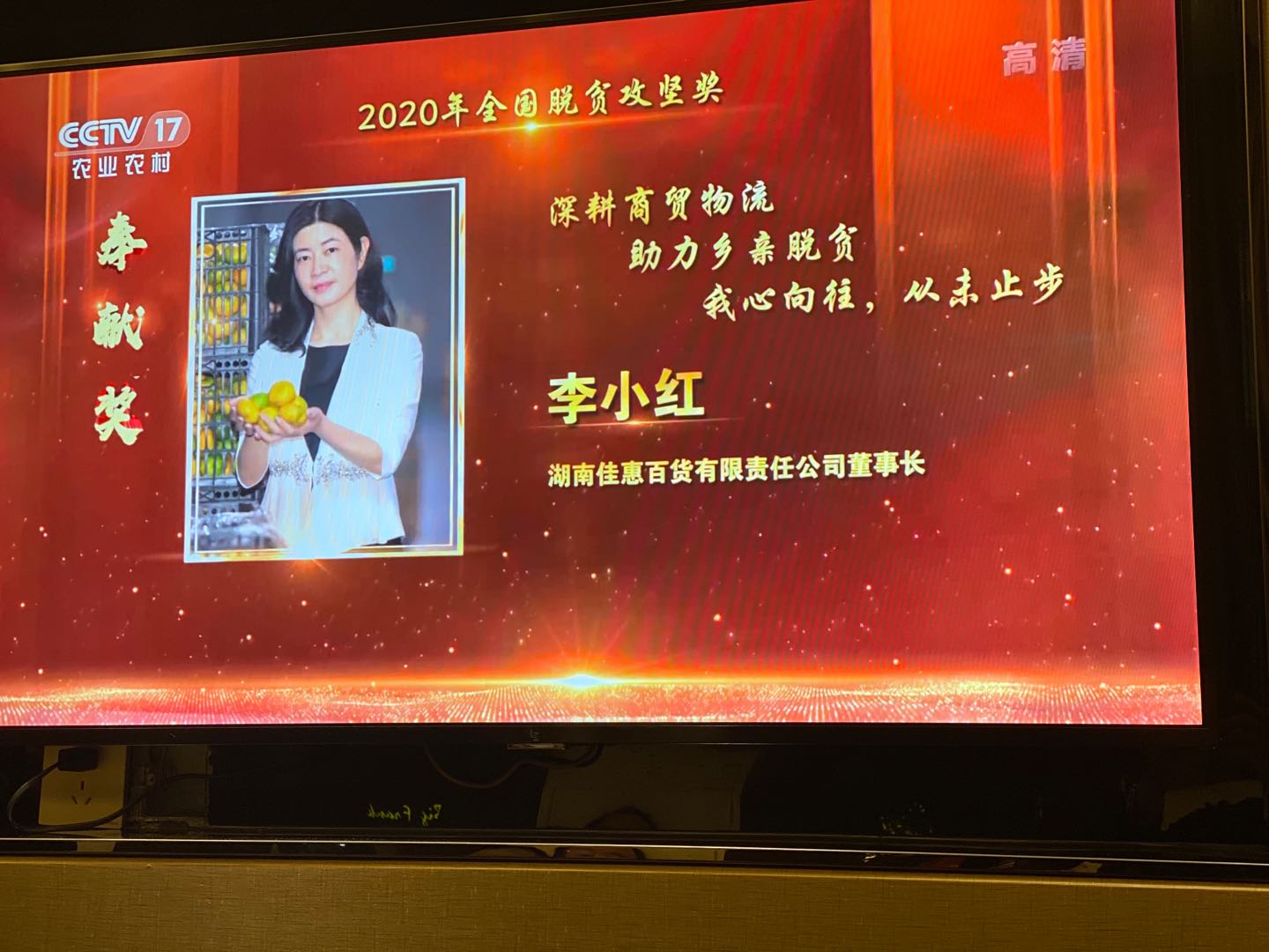 龙商网消息: 10月17日是第7个全国扶贫日,国务院扶贫开发领导小组在北京召开2020年全国脱贫攻坚奖表彰大会暨脱贫攻坚先进事迹报告会。当天上午,国务院扶贫开发领导小组发布关于表彰2020年全国脱贫攻坚奖的决定,湖南佳惠百货有限责任公司董事长李小红获评2...