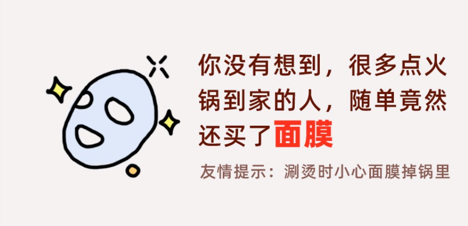 火锅外卖异军突起,还得益于其与其他生活场景的完美融合。根据盒马火锅报告显示,不少人在下单火锅外卖的同时,还顺带买了面膜。吃火锅和敷面膜,原本毫不相关的两个场景,通过外卖融入到一起,创造出新的消费场景。