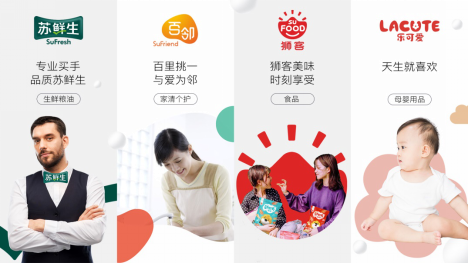 苏宁快消自有品牌定位全渠道商品品牌,采用了多品牌策略,核心产品发挥供应链优势,从快消产品线出发,规划有苏鲜生Sufresh、狮客Sufood、百邻Sufriend、乐可爱Lacute 4个自有品牌,分别聚焦开发生鲜、食品、非食、母婴产品,每个品牌都具有了鲜明的品类特征。