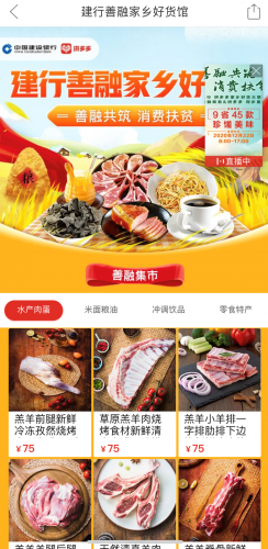 日前,中国建设银行联手拼多多开展“善融共筑 消费扶贫”专场活动,并同步开设消费扶贫专馆。