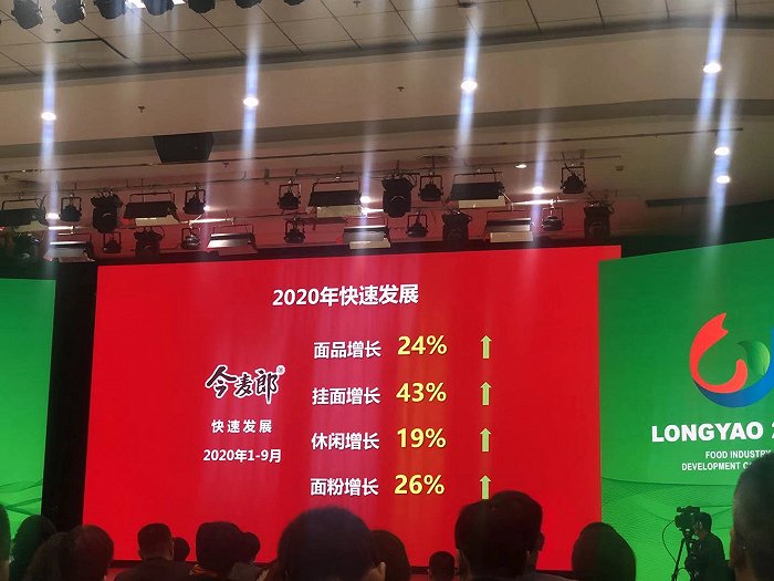 在2020年10月河北邢台的一次食品行业论坛上,界面新闻记者获悉,今麦郎在2020年1-9月的增长势头不错,面品增长24%,挂面增长43%,休闲增长19%,面粉增长26%。