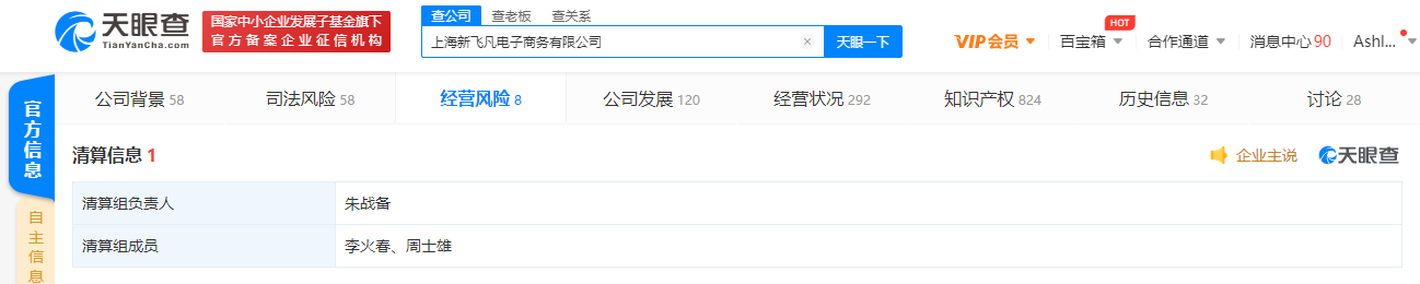 天眼查App显示,近日,万达旗下电商平台上海新飞凡电子商务有限公司进行了清算,清算组负责人为朱战备,清算组成员为李火春、周士雄。此外,1月4日,该公司经营状态变更为“注销”,注销原因为决议解散。上海新飞凡电子商务有限公司成立于2015年3月,4.4亿人民币,由上海万达网络金融服务有限公司全资控股。