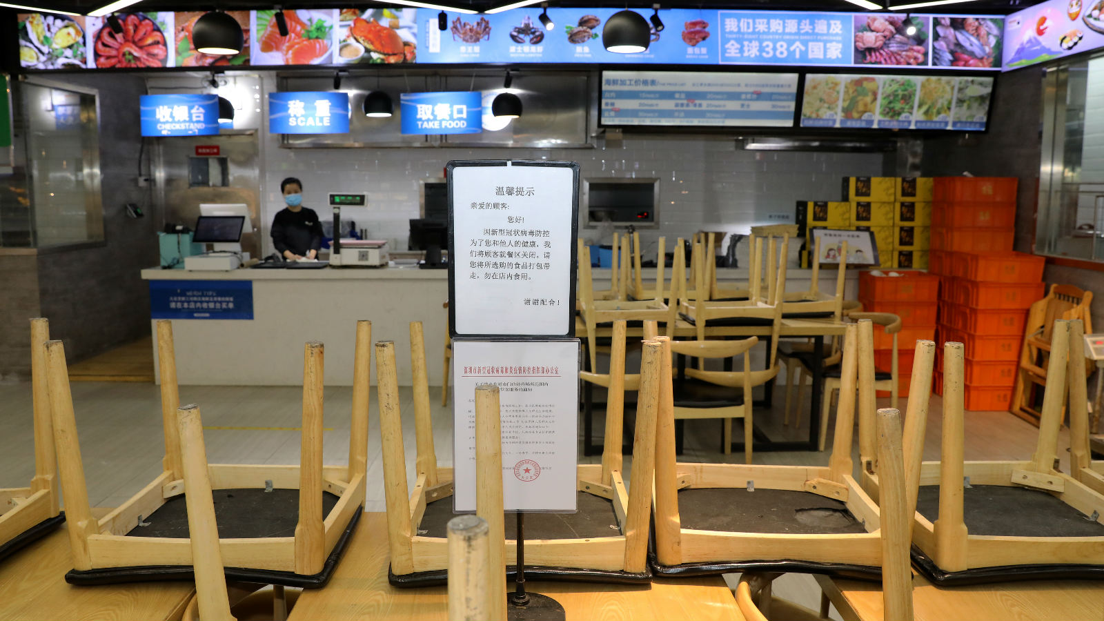 ▲家乐福超市内暂停堂食。