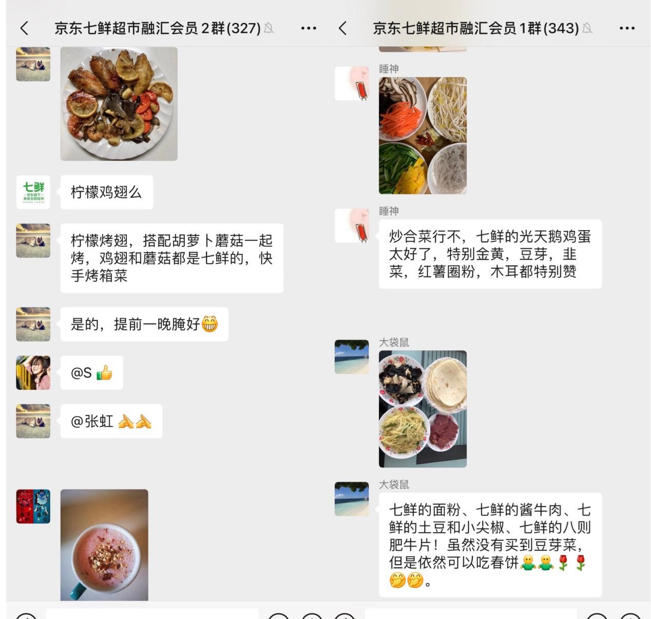 经过几天的努力,大家惊喜地发现社区居民们从原本咨询“什么商品能买到”逐渐变成了讨论“什么商品值得买”。邻里之间的关系更加和睦,甚至有群友讨论烹饪经,相约结束隔离后结伴去七鲜购物。