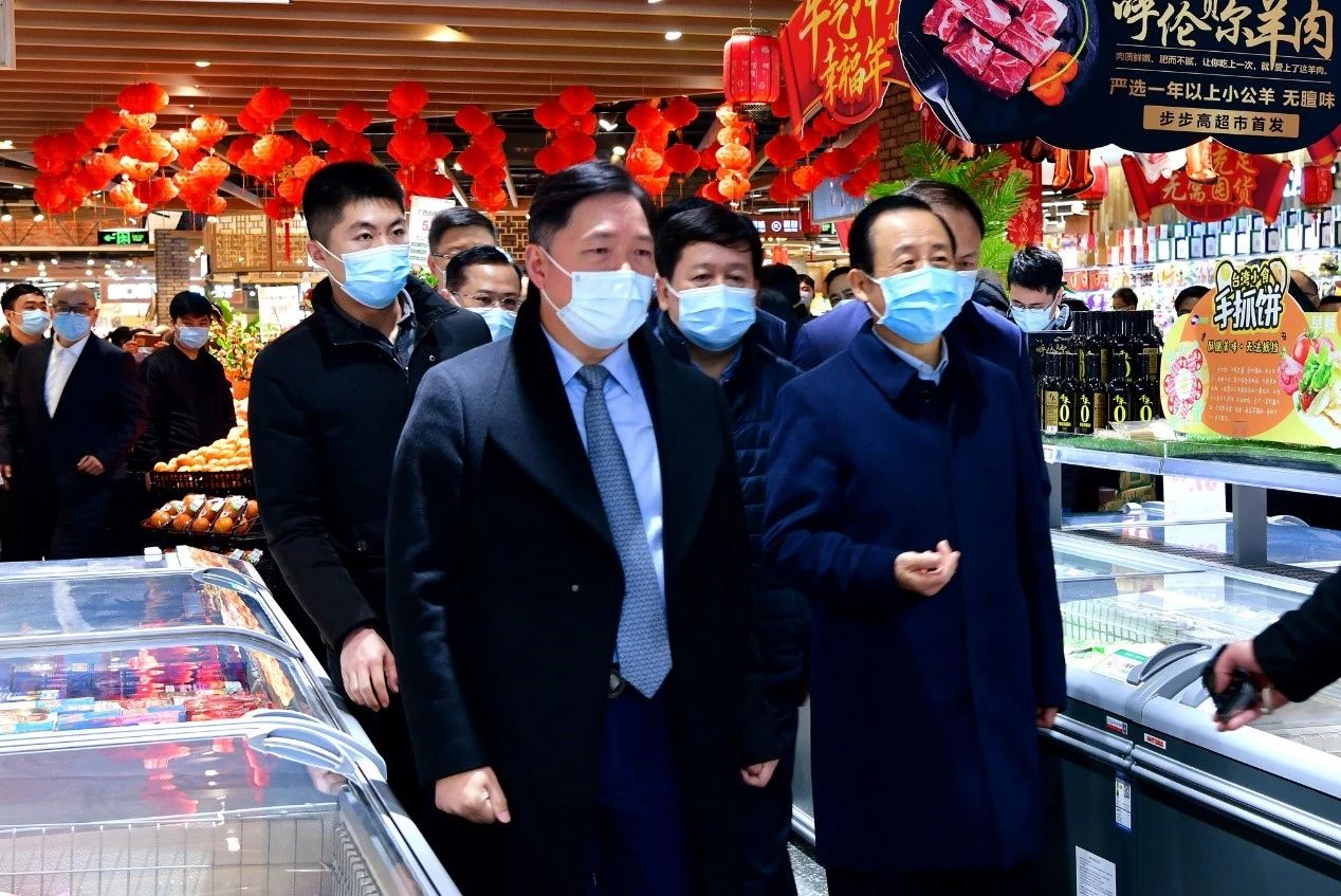 2月5日下午,湖南省委书记许达哲一行来到位于雨花区的步步高东塘里·邻里中心,许达哲先后走访了农贸市场的蔬菜、粮油、肉品摊位,询问了有关在春节物资准备、产品供应、卫生防护等多方面工作。步步高集团董事长王填一行接待。