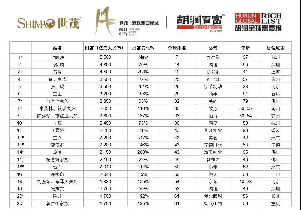 龙商网消息:3月2日,胡润研究院发布《2021胡润全球富豪榜》。榜单显示,今年共有来自68个国家、2402家公司的3228位十亿美金企业家上榜,比去年新增412位,创历史新高。其中,亚洲十亿美金企业家人数占全球51%,总财富占全球45%,首次超过世界其他地区的总和。其中,中国以1058位十亿美金企业家领先于美国,增加259位,而美国有696位,增加70位。农夫山泉钟睒睒以5500亿元财富成为第一位进入全球前十的中国企业家,位列第七,成为亚洲首富。