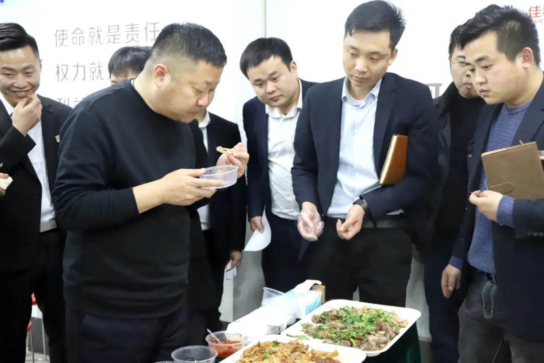 会议中,对自有品牌熟食系列:李家香肚、五香酱牛肉、白酥鸡、皮婆婆烧鸡等十几款产品进行了试吃体验,所有参会人员纷纷排队进行产品试吃,并且对产品提出了宝贵意见。