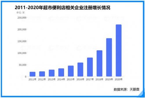 报告显示,截止到2021年4月,我国共有92万家超市便利店。其中2015年-2020年,年平均增长率均超30%;2021年,新增6.9万多家超市便利店。