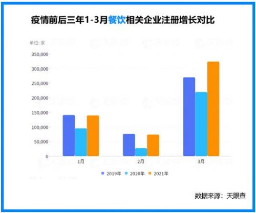 天下熙熙,皆为利来;天下攘攘,皆为利往。餐饮、住宿、影院、旅游景点、商场百货……人潮川流不息,蒸腾着市井烟火。报告显示,2021年1-3月餐饮相关企业注册量为53.7万家,比2020年同期同比增长57.1%,较2019年增长10.3%。尤其是在2021年3月,该月注册量为32.4万家,创2019年以来新高。