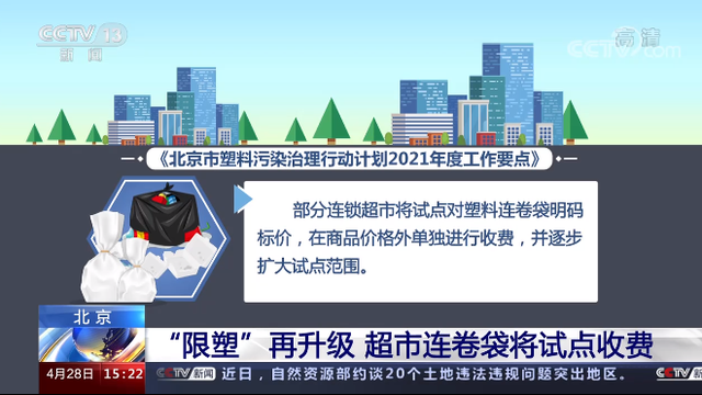 部分连锁超市将试点对塑料连卷袋明码标价,在商品价格外单独进行收费,并逐步扩大试点范围。