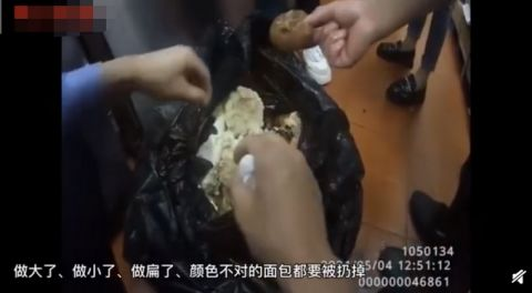 5月4日,在雨花客厅一家面包店的厨余垃圾桶内,有大量丢弃的面包。其中多个名为“奶油号角”的面包,因为长度不足以制作一个成品就被丢弃;有多个“摩奇包”,因为尺寸偏小,不符合成品要求也被丢弃。工作人员称这些都属于生产报废,按照公司的要求只能丢弃。就在执法人员检查期间,工作人员又丢弃了一款名为“初樱朵朵”的粉红色面包,而且还是一次性扔掉了好几个。工作人员介绍,这是因为面粉醒发的偏大,形状不太好看,不符合成品的要求,也要进行生产报废。除了这些生产报废的面包外,执法人员了解到,每天卖不完的面包也会作报废处理。工作人员说:“因为公司规定面包必须当天制作当天销售,既不打折销售也不发给员工。每天报废的数量不等,平均下来每天要报废几十个面包。”