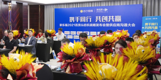 (图:苏宁家乐福2021百货&纺织战略发布会与合作伙伴携手共进)