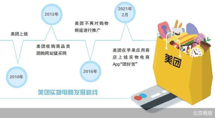 2016年,也就是“吃下”猛买网后的第三年,美团对实物电商业务进行了调整。美团当时称,“8月1日后将不再对购物频道进行推广,原商品交易团队将调整至外卖配送事业群孵化新业务,未来美团将继续战略聚焦O2O生活服务平台”。当时有观点认为,美团此举是放弃了实物电商,其实不然。