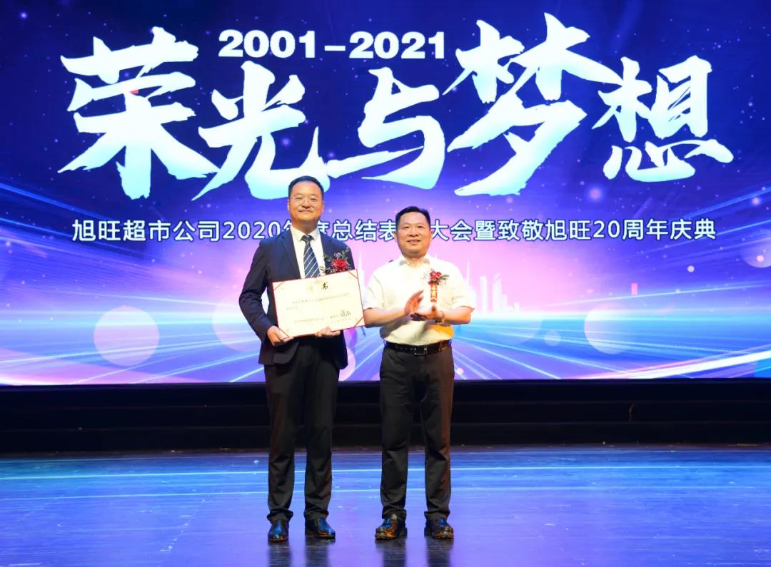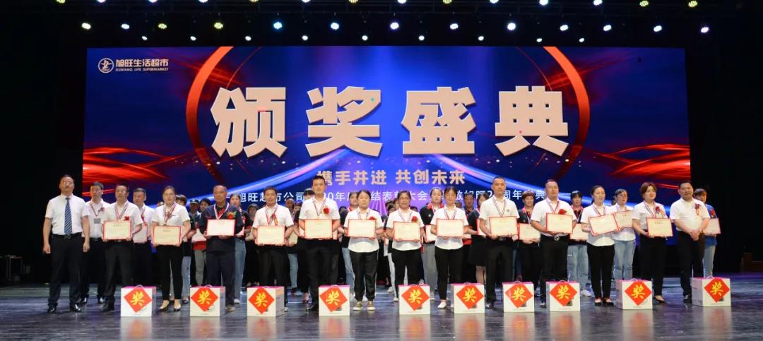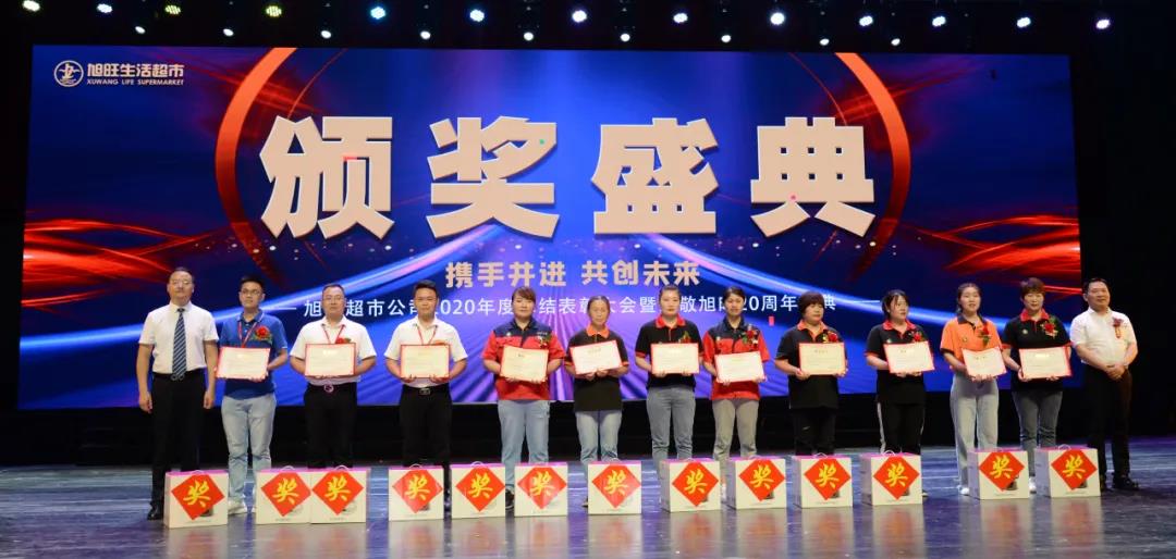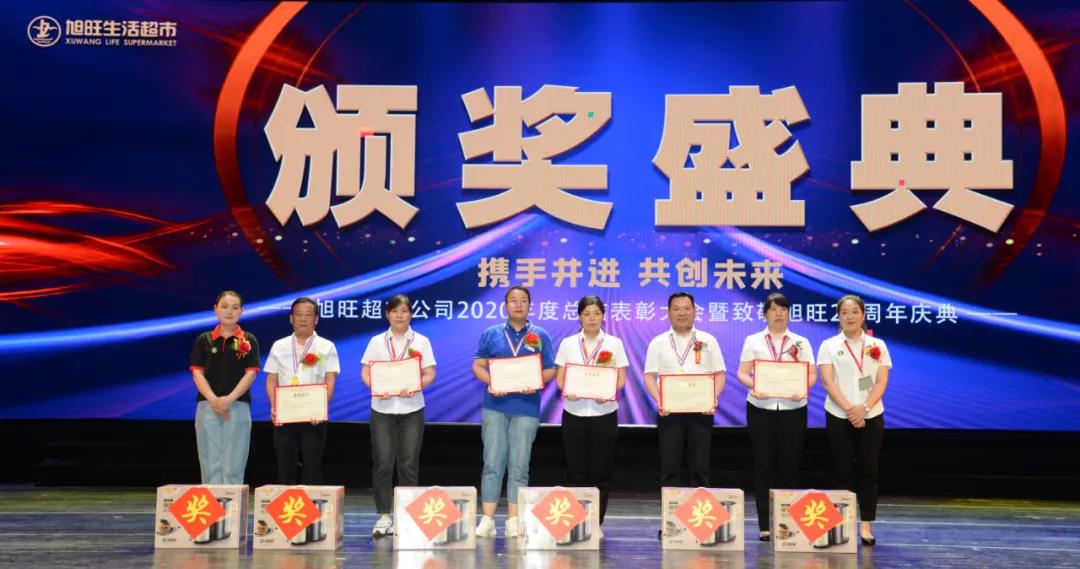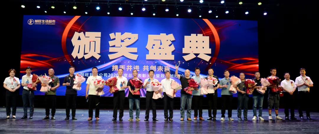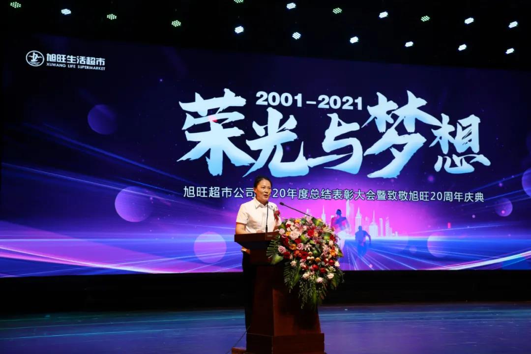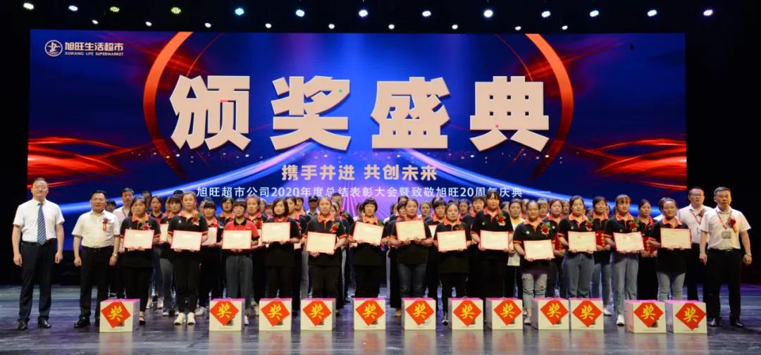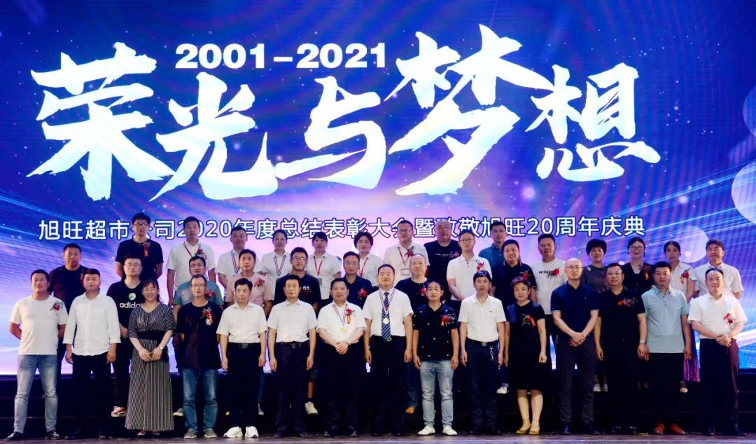 龙商网消息:6月10日,旭旺超市公司“荣光与梦想”2020年度总结表彰大会暨公司成立20周年庆典在睢宁四馆隆重举行。来自公司总部、配送中心和33家门店的代表、供应商代表等共计700余人参加了会议。