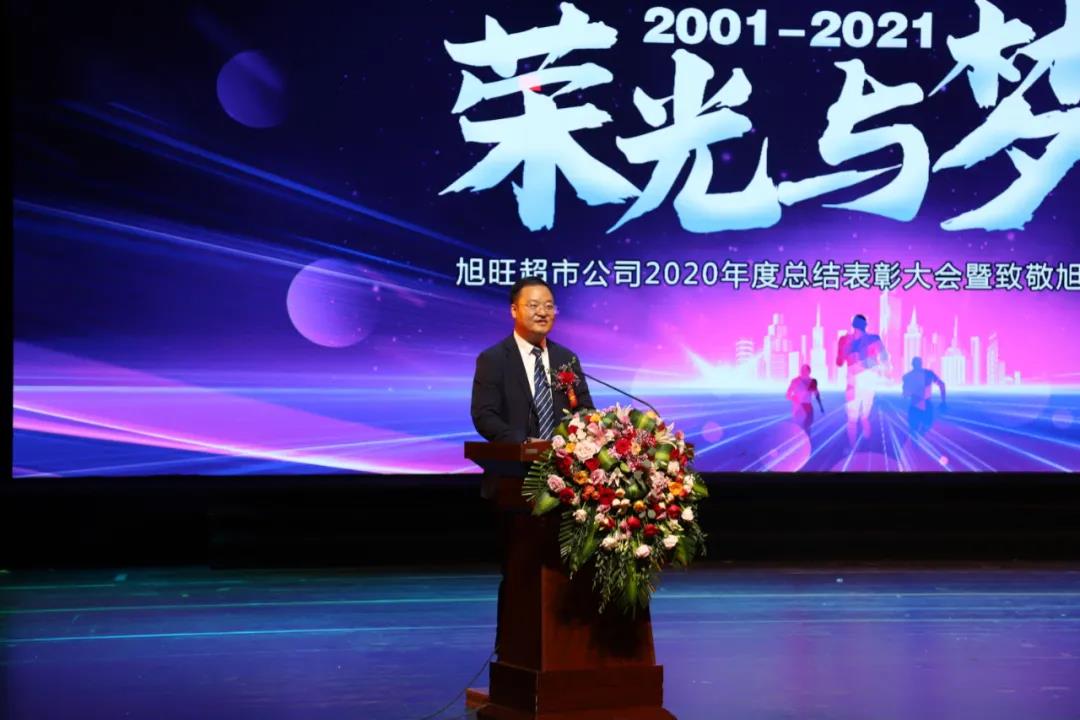 在讲话中,旭旺公司董事长许治回顾总结了旭旺公司成立20年来取得的成绩,20年来旭旺公司始终坚持发展第一不放松、坚守零售人的初心不动摇,坚守为顾客、为员工、为合作伙伴,为社会服务的初心不动摇,在充满艰辛和奋斗的20年里,在激情燃烧和追逐梦想的20年里,逆势而上,开启了从无到有,从小到大,从弱到强的恢弘篇章,连锁门店由一家不足200平米的小店发展到33家门店,员工由100人发展到1400人,走出了一条民营零售企业蝶变超越的发展之路。