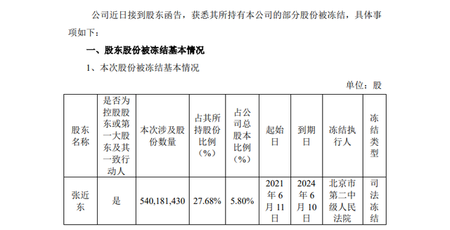 公告指出,本次股份被冻结事项不会导致公司实际控制权变更,不会对公司的生产经营、公司治理产生重大影响。股东正在积极与相关方进行沟通,相关债务人认为相关执行公证债权文书案所依据的执行证书不符合最高人民法院关于公证债权文书执行若干问题的规定要求,北京市第二中级人民法院已经受理了相关的执行异议。