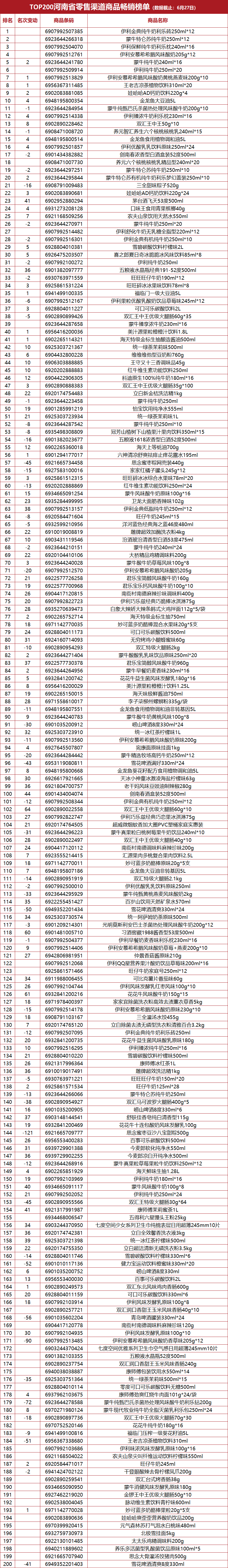 3、上期因端午节上榜的粽子本期仅余3品在榜;饮料上榜单品数量较上期增加4品,增加10%。新上榜的4品饮料分别为:零度可口可乐碳酸饮料无糖500ml、脉动维生素饮料青柠味600ml、娃哈哈爽歪歪营养酸奶饮品200g、元气森林苏打气泡水白桃味480ml。