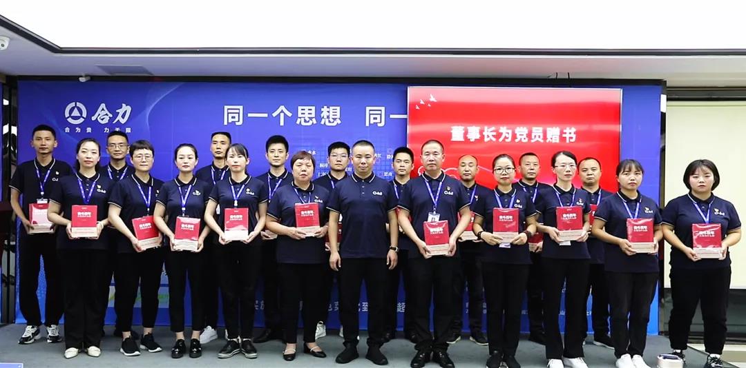贵州合力超市集团董事长李德祥为党员、经营班子成员赠书,为入党积极分子赠党章。