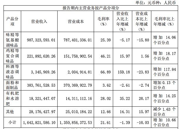 虽然从莲花健康的产品结构看,除味精、鸡精在内的调味品系列外,还有植物蛋白系列和小麦面粉系列,但味精仍然是其最核心的产品。