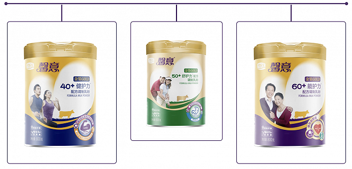 据自媒体“新乳业”报道,君乐宝旗下成人奶粉系列“馨意”,将于近日推出三款以年龄定义的高端功能型奶粉,分别是40+健护力配方调制乳粉、50+舒护力配方调制乳粉、及60+能护力配方调制乳粉。