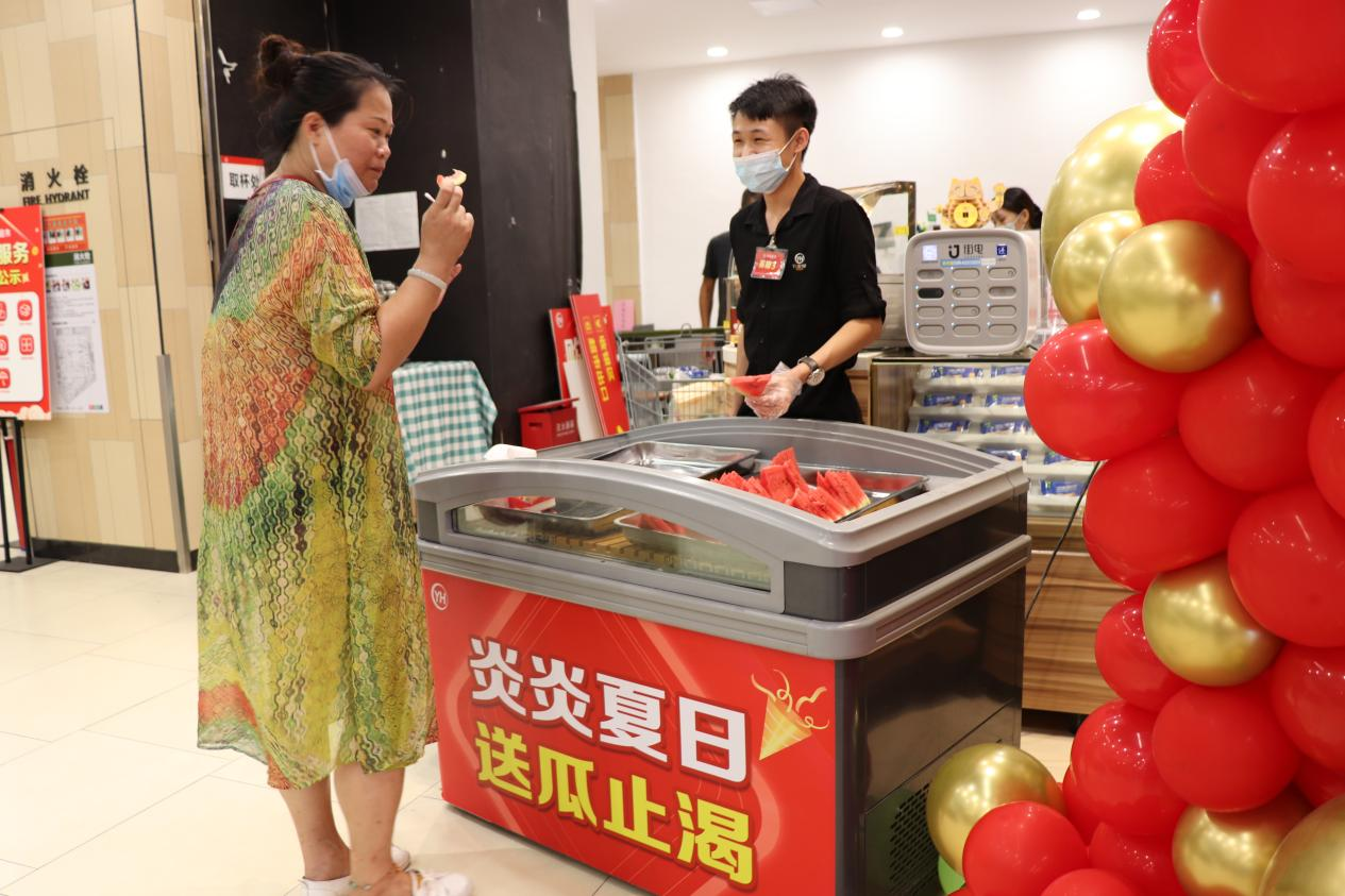 秉承以用户中心的经营理念,永辉仓储店不仅拥有极具性价比的商品,服务方面也全新升级,提供夏日赠瓜、怀旧棉花糖、快乐气球、产品试吃、自助取冰处等免费增值服务。此外,为增强与消费者的互动,开业当天,门店举办了精彩纷呈的活动。顾客参与探店打卡拍照、扫码入群、填写购物问券等均可领取礼品。