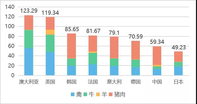 图:人均肉类耗量与结构对比(千克)