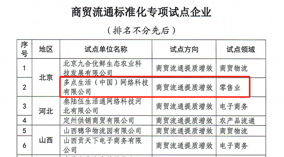 日前,商务部会同市场监管总局联合公布了国家级服务业标准化试点(商贸流通专项)名单,在企业自愿申报、地方择优推荐的基础上,经专家层层评审和社会公示,一站式全渠道数字零售解决方案服务商多点Dmall成功入...