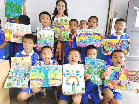 捐赠仪式后,一同而来的美术老师给孩子们讲解分享画画小知识,希望孩子们通过学习美术知识,在日常生活中发现美,用画笔记录爸爸妈妈、老师同学乃至家乡和生活的美好。