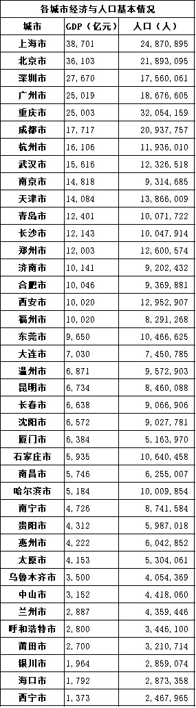 1. 各城市GDP数据均取自各省统计局官网。