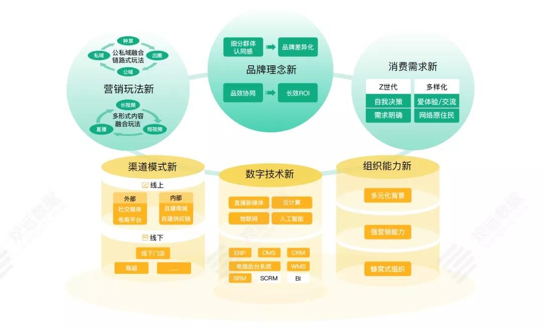 当人们用“新锐”这一词汇来定义消费品牌,更多的是意指该品牌所具备的创新特征与快速成长。新锐品牌的发展不应该简单地定义为“商品卖爆”,而要从多个视角去定位其含义。观远数据在《2021新锐品牌数字化运营白皮书》中,提出了新锐品牌的“六新模型”,包含消费需求新、渠道模式新、营销玩法新、品牌理念新、数字技术新与组织能力新。