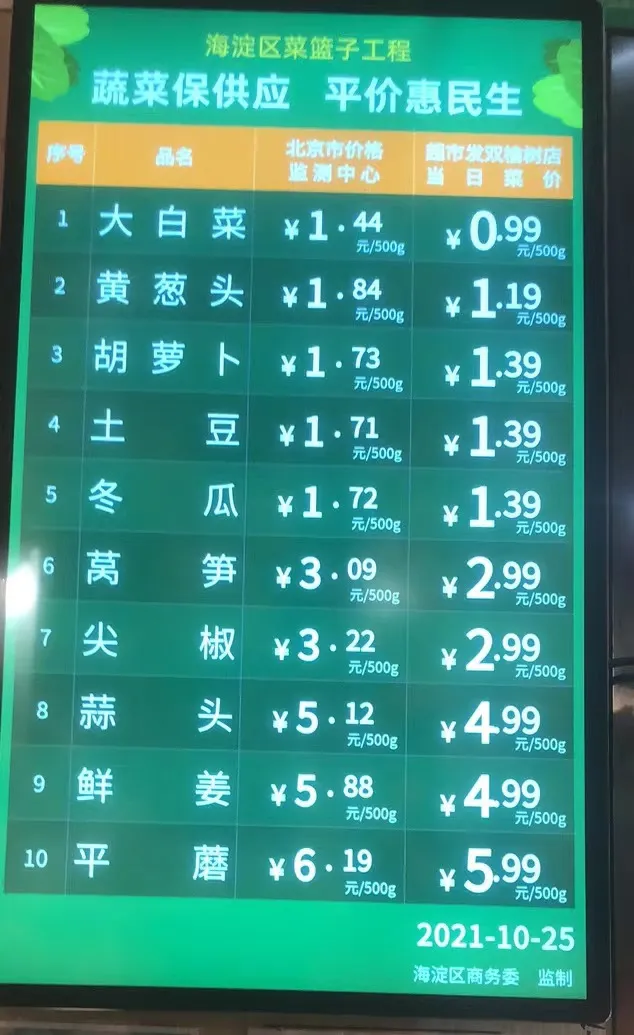 超市发采购总监张云春介绍说:“我们发挥自有的115个直采基地的作用,从全国调配蔬菜,确保货量充足,价格稳定。我们在基地设有专员,每天及时了解产地供货价格和供货量的情况,将最低价格的菜采购进京。这些专员每天也会跟基地多次沟通,确保有充足货量供给。”