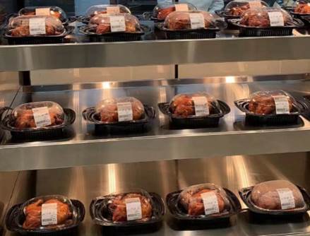 (图:家乐福熟食区充溢着诱人香气的烤鸡)