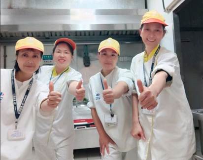 (图:家乐福烤鸡大厨汪春宴(左二) 和她的同事们)