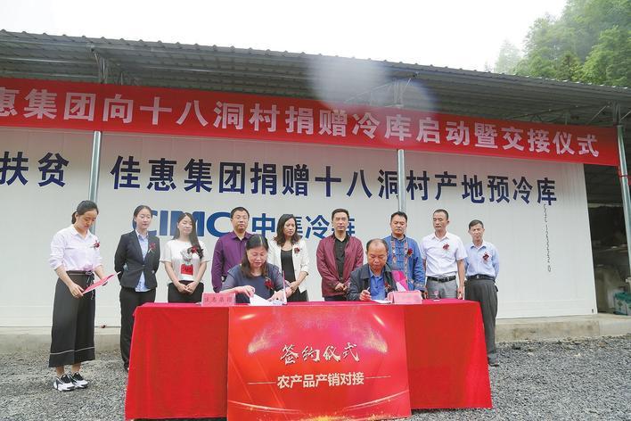 佳惠在十八洞村捐建冷库,签订农产品产销对接合作协议。