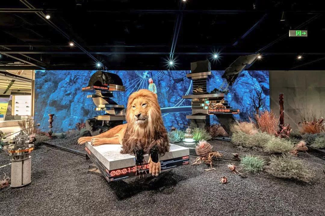 艺术装置《最后一个“地球人”》带领来宾踏上SKP-S的多元艺术之旅。一只雄狮卧在颓败残损的LOGO旁打量四周的土地,试图努力接受自己身处的困境,提醒每一位来宾思考过去、当下与未来之间的交融。