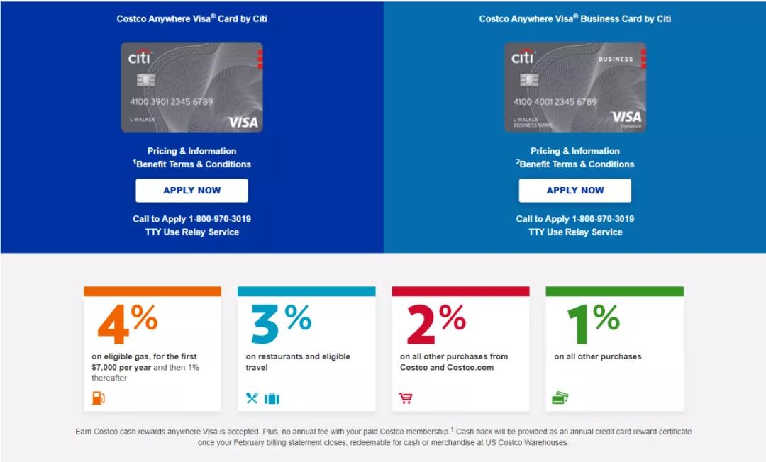 左为Costco普通信用卡 右为Costco商务信用卡