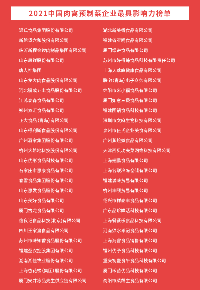 恭喜以上上榜企业,“2021中国预制菜产业创新榜单”发布到这里就告一段落,感谢一直关注本次榜单的行业伙伴,我们明年再会!