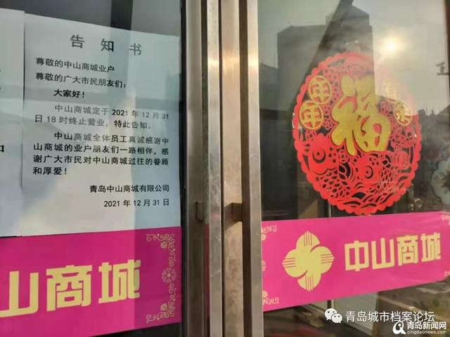 告知书显示:中山商城定于2021年12月31日18时终止营业,特此告知。中山商城全体员工真诚感谢中山商城的业户朋友们一路相伴,感谢广大市民对中山商城过往的眷顾和厚爱!