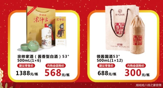 1月23日,北京商报记者在娃哈哈八桂之家公众号注意到,在《你想要的年味,这都有……》一文中,娃哈哈酱酒产品——宗帅家酒(酱香型)53度500ml被曝光,建议零售价1388元/瓶,内购会团购价568元/瓶。