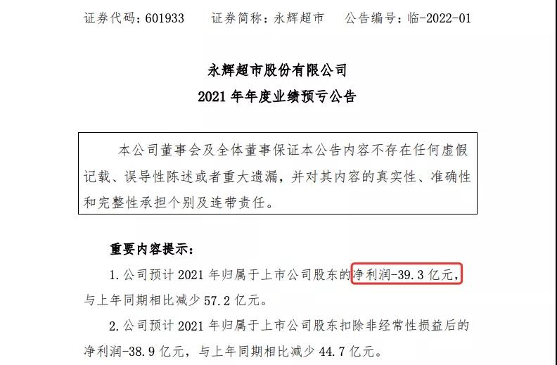 上市12年首次年亏39.3亿:永辉为超市企业2021业绩报表打个样?
