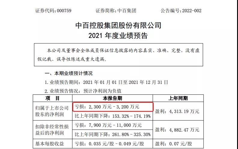 中百集团:预亏2300万至3200万