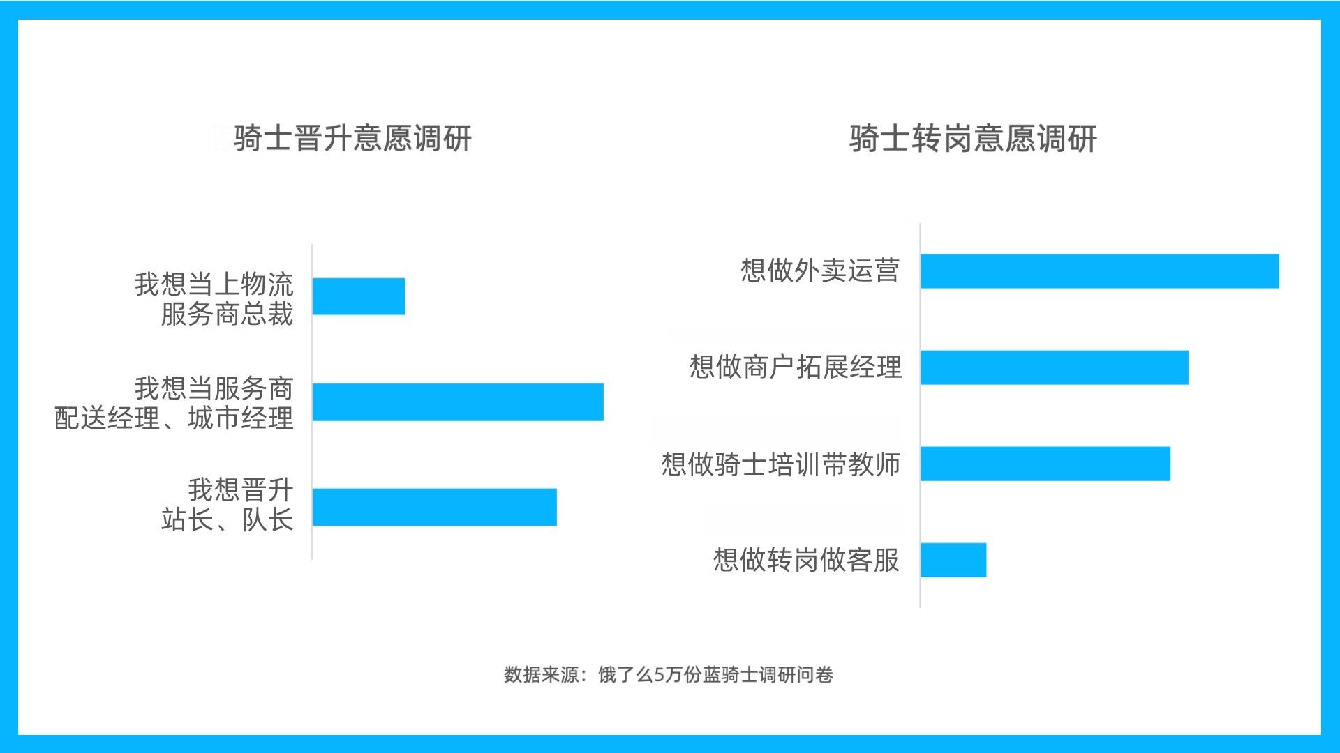 2021年共有1877位骑士像宋北京一样获得晋升。根据调研,45%骑士将“晋升为站长、配送经理”作为自己下一步的发展目标,更有8%骑士期待日后“成长为物流服务商总裁”。来自上海的李伟从骑士做起,目前已经是服务商的上海城市经理。李伟说:“只要肯吃苦、钻研,这个行业有很多机会。”除了岗位晋升,饿了么还在打造更丰富的转岗通路,外卖运营和商户拓展经理是骑士最想转岗的岗位。