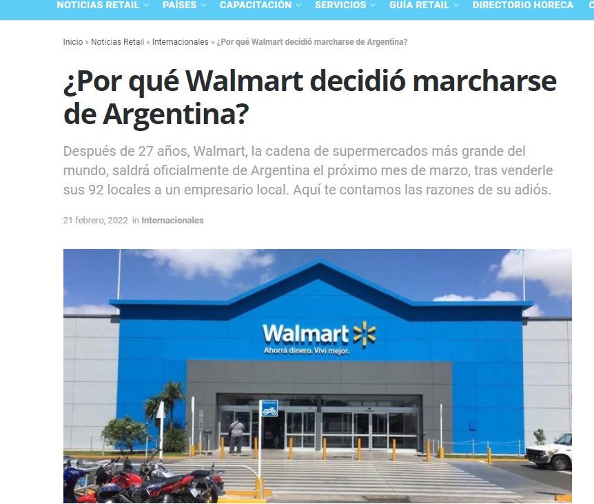 报道称,沃尔玛于1995年登陆Avellaneda,并计划成为阿根廷和拉美地区第一大连锁超市。但是受疫情影响沃尔玛决定加快数字化建设,加强其电子商务渠道并放弃阿根廷等被视为非战略性的市场。