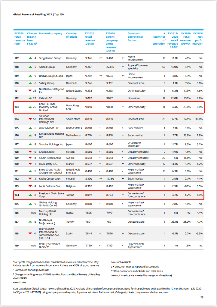 2022全球零售250强名单出炉:14家中企上榜,永辉超市跻身百强