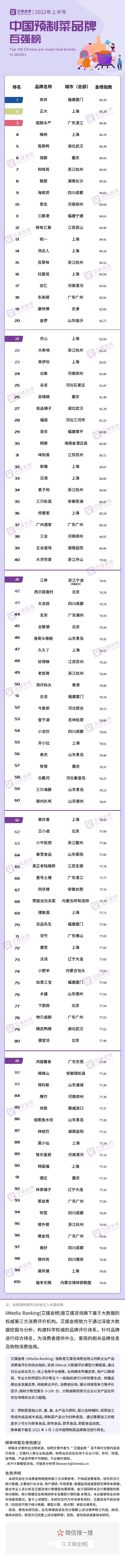 艾媒金榜|2022年上半年中国预制菜品牌百强榜