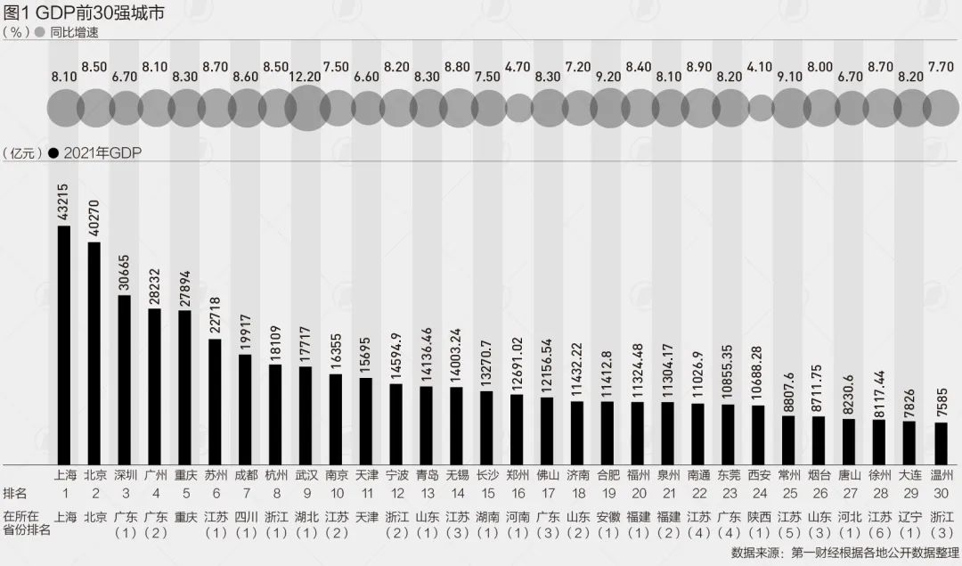 随着各地陆续公布2021年数据,全国330多个地级及以上城市中前100名的城市名单也出炉了。 第一财经根据各地统计局公布的数据和公开报道梳理发现,2021年GDP百强城市经济总量达到79.8万亿元,占全国比重的69.8%。从省份分布来看,江苏13个城市全部进入百强,山...